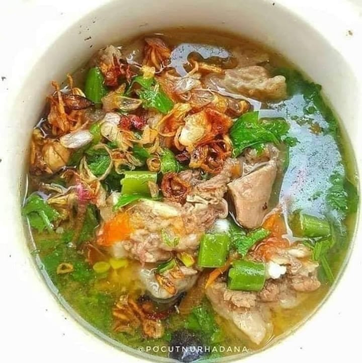 Bahan : 1/2 kg tulangan sapi. Sayur (wortel dan kentang sesuai selera). 4 siung bawang putih, iris. 4 butir bawang merah, iris. 3 buah daun bawang, iris. 2 buah seledri, iris. 1 buah tomat, potong. Gula, garam dan merica secukupnya. Cara : 1. Bersihkan tulangan sapi. Rebus hingga air mendidih. Buang airnya cuci kembali. Lalu rebus hingga empuk, bisa menggunakan presto. 2. Tumis bawang merah dan bawang putih. Masukan air dan tulangan sapi. Tunggu hingga mendidih lalu masukan wortel dan kentang. 3. Tambahkan irisan daun bawang, seledri, gula garam dan merica. Rebus selama 30 menit dengan api kecil. Koreksi rasa. Terakhir taburkan bawang goreng lalu sajikan.